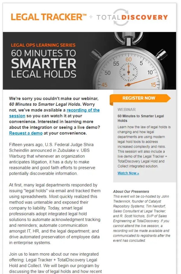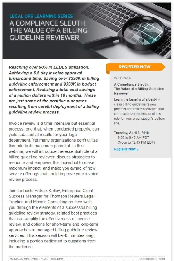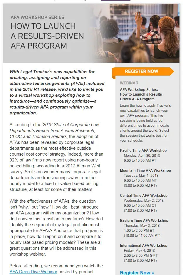 Telling the ROI story of Legal Tracker for corporate law firms.